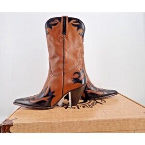 With Box Lucchese Charlie 1 Horse Women's Western Boots Size 7B Black/Brown Real Leather