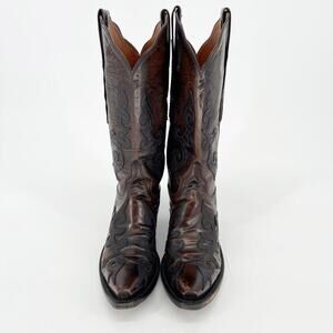 Lucchese Classics Brown Mixed Exotic Leather Overlay Western Cowgirl Boot