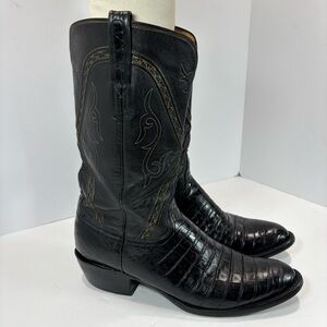 Lucchese Handmade Classic Crocodile Jones Black Embroidered Men 10.5 USA L 0311