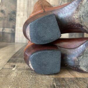 Boots need new heel caps. In used condition. Boots have marks, scuffs, scratches and show heel wear (See photos). Shipped with USPS mail.