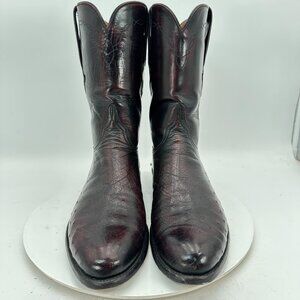Lucchese Men Size 10.5D 300134 Dark Burgundy Ostrich Leather Western Boot