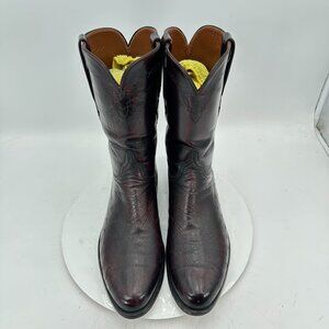 Lucchese Men Size 10.5D 300134 Dark Burgundy Washed Leather Pull On Western Boot
