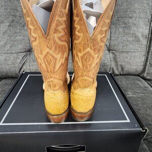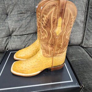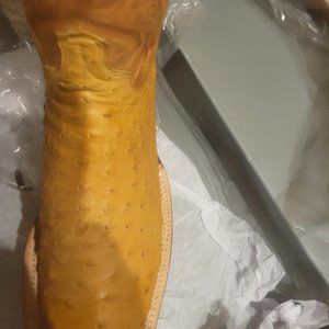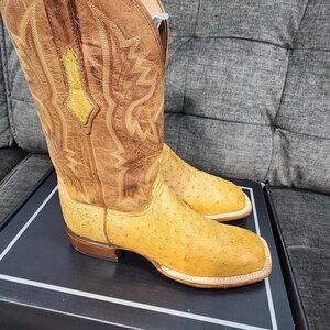 Lucchese Ostrich Square Toe Boot Like New Saddle/Peanut Br(Includes Boot Trees)