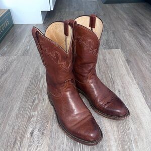 Elegant Lucchese cowboy boots in rich brown leather. Stylish and durable for any occasion.