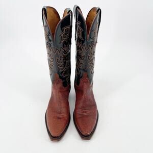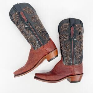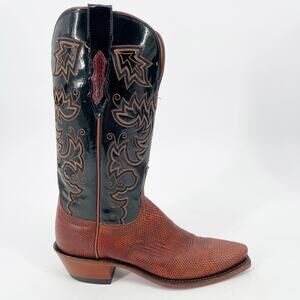 Lucchese Women’s 7 Black & Cognac Lizard Print Snip Toe Western Cowgirl Boots