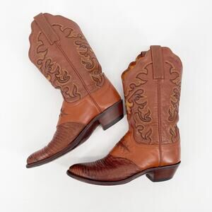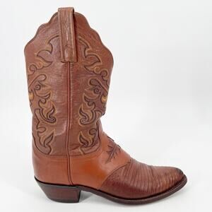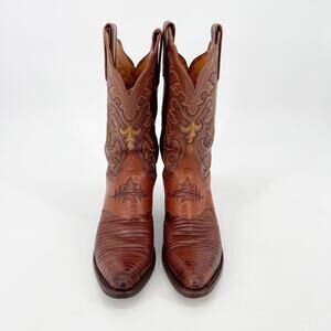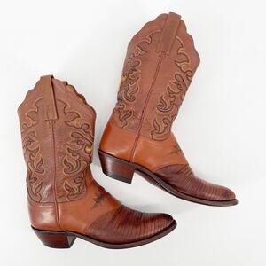 Lucchese Women’s 8 Brown Lizard & Goat Leather Almond Toe Western Cowgirl Boots