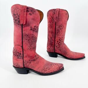 Lucchese Women’s 8 Pink Suede Cheetah Print Snip Toe Western Cowgirl Boots