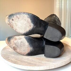 Up for sale I have this pair of Lucchese Women's Black Leather Embellished Cowboy Cowgirl Boots. US size 6.5. These boots are in great overall condition. Some sign of use, so be sure to take a look at the photos and feel free to message me with any questions.