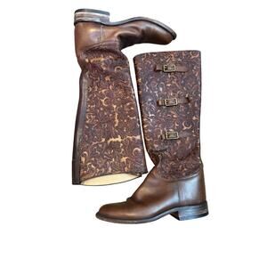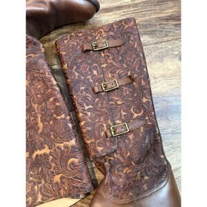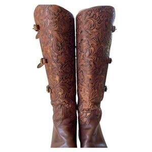 Lucchese Women's Brown Hand Made Tooled Leather Tall Riding Knee Boots Size 7.5