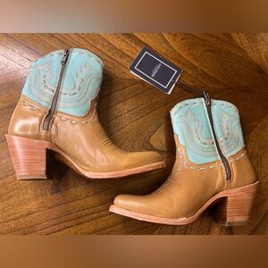 Lucchese Women’s Size 8 Short Western Boots Tan & Turquoise Leather NWT