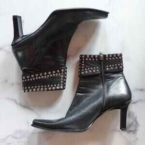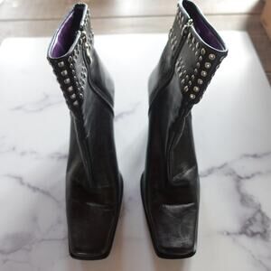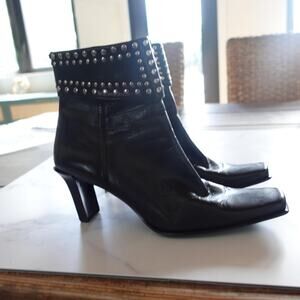 Lucci Boots Womens Size 9 Black Studded Ankle Booties Side Zip Square Toe Heels