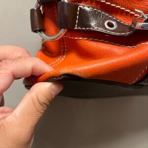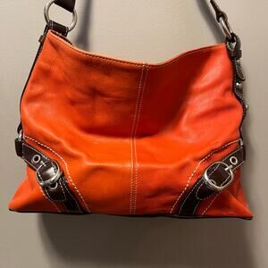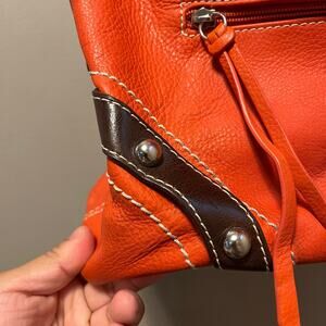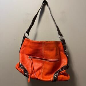 Luce Genuine Leather Hobo Studded Handbag Orange Brown