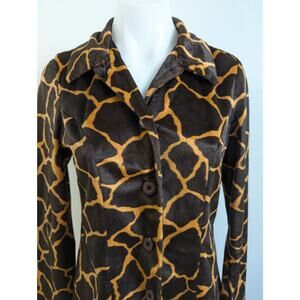 Luce Size Small Giraffe Print Shirt Dress Coat Brown Black Button Up Long Sleeves