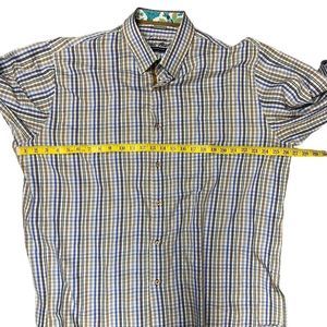 Luchiano Visconti Black Mens Button Down Shirt Sz 2XL Purple Blue Multicolor. Please see pictures for description of wear as well as measurements. There is some light pit staining. SPN-#R2