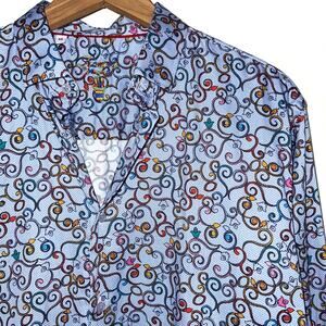 Luchiano Visconti Blue Scroll Print Cotton Long Sleeve Button Down Shirt