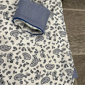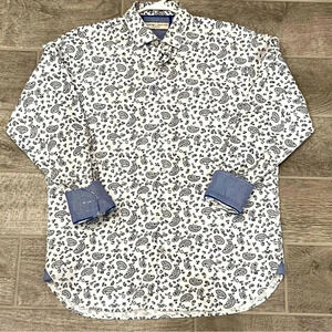 * Luchiano Visconti Classic men’s white button-down shirt with blue paisley design.