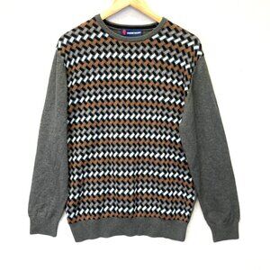 Luchiano Visconti Lattice Sweater Mens Large Crew Geometric Retro Gray Orange