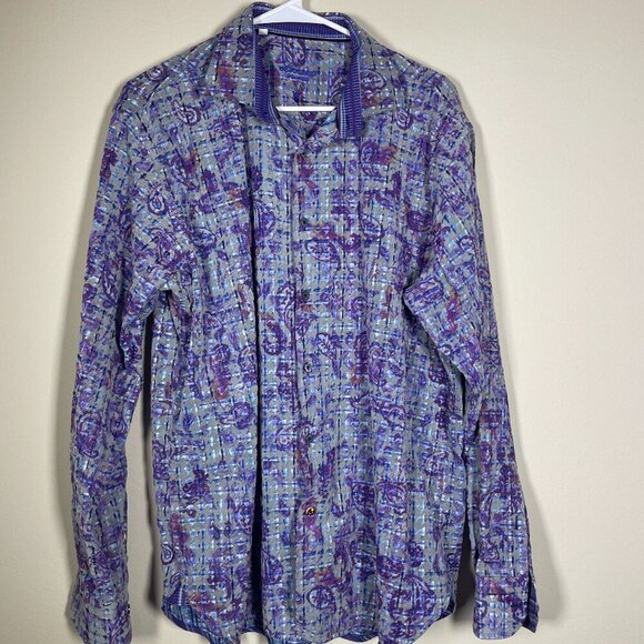 Luchiano Visconti Men's Raised Velvet Print Purple Blue Button-Up Shirt L Preppy