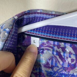 Luchiano Visconti Men's Raised Velvet Print Purple Blue Button-Up Shirt L Preppy!