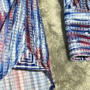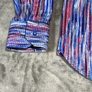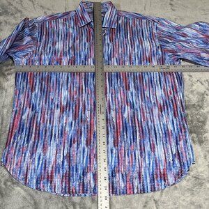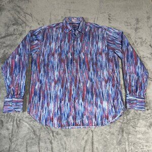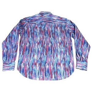 Luchiano Visconti Shirt Men's Medium Blue Pattern Long Sleeve Flip Cuff Button Up Casual Sport