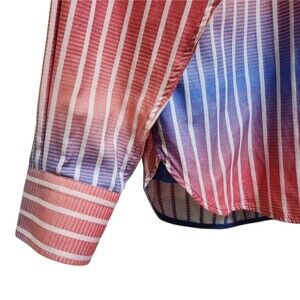 Luchiano Visconti Shirt Mens XL Blue Red Cotton Modal Striped Tie Dye Print Button Down Long Sleeve Flip Cuff Designer Preppy Casual Office Travel Party Artsy