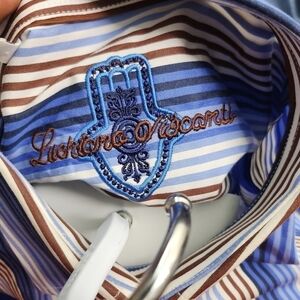 Luchiano Visconti Striped Men Button Down Long Sleeve Shirt Size Large