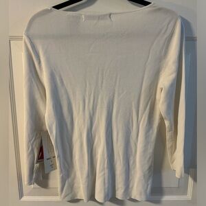 Lucia Burns Butterfly Motif Sparkly Fancy Fun Embellished Knit Beaded Sequins Fitted Top Large Y2K 90’s New with tags. Small black spot top right hand corner & faint spot on bottom left hand corner that may come out when washed. Has a little stretch to it but is a more fitted style.