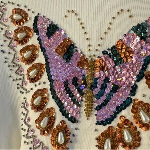 Lucia Burns Butterfly Embellished Knit Beaded Sequins Fitted Top Large Y2K NWT