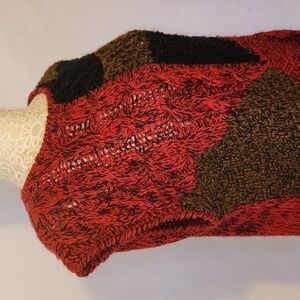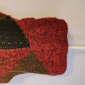 Lucia Hand Knit Red Black Round Neck Chunky Ramie Blend Sleeveless Sweater Top