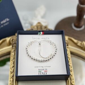 Elegant, timeless, and made in Italy. This Lucia Mara bracelet is crafted from genuine sterling silver and features a beautiful row of polished beads for a refined, minimalist look. A perfect everyday piece or a thoughtful gift, it comes in its original branded box.