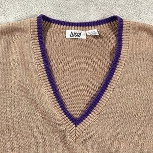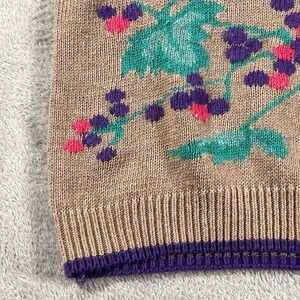 Lucia Ramie Blend Sweater Vest Knit Ribbed Floral Fairy Grandma Purple Cozy L
