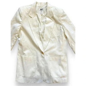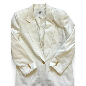 Lucia Vintage Oversized Blazer Jacket White Ivory Gold Button Womens Size 12 USA