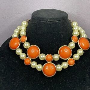 Costume jewelry orange and off-white fake pearls with claw clasp closure. Does show signs of wear on back.