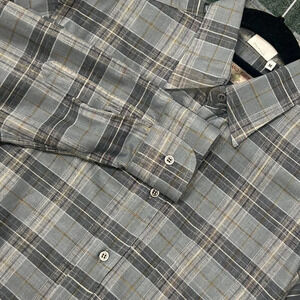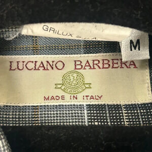 Luciano Barbera Italian Gray Blue Plaid 100% Cotton Shirt Medium