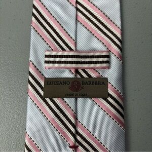 Luciano Barbera Made in Italy REPP Tie Striped Blue Pink Brown Silk