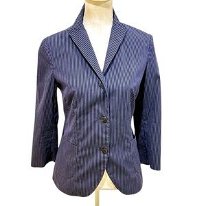 Luciano Barbera Tailored lightweight cotton navy blue pinstripe Blazer Italy 8