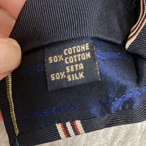 Luciano Barbera Silk/Cotton Tie in Navy with Red & Tan Diagonal Stripe.