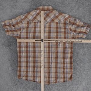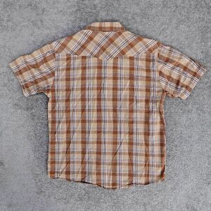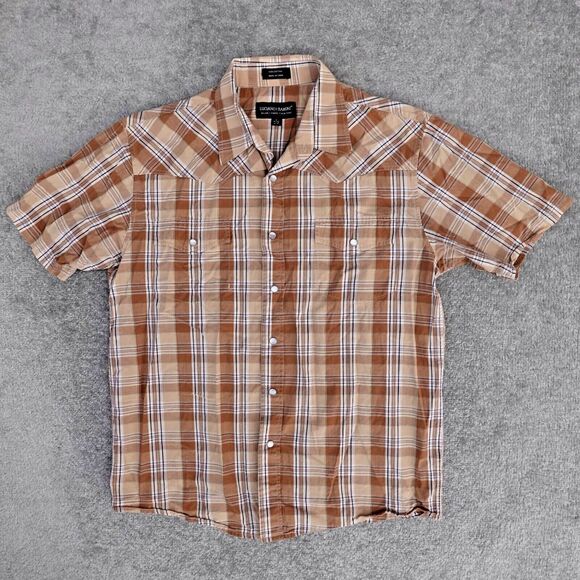 Luciano Baroni Shirt Men Large Brown Plaid Pearl Snap Short Sleeve Cotton Casual