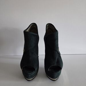 Luciano Carvari Elegant Dark Green Suede Peep-Toe Heels 5 in.sz.35 (5)