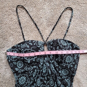 Luciano Dante 100% Silk Halter Keyhole Dress Black Aqua Floral Lined Dress 6
