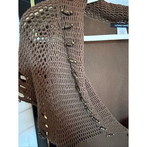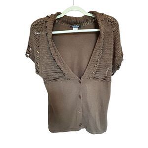 Luciano Dante Brown Knit Beaded Boho Crochet Short Sleeve Button Sweater Top XL