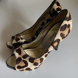 Luciano Padovan Peep Toe Pump Pony Hair Calf Animal Print Leopard Cheeta…