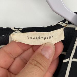 Lucid Pink Windowpane Round Neck Short Sleeve Back Keyhole Blouse Black Small