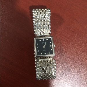 Lucida Women's Silver Tone Bracelet Watch with black dial. Item is pre- owned and will show normal wear, but in good shape and works well.