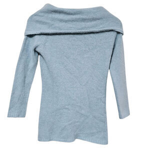 Lucidity Angora Blend Soft Cowl Off Shoulder Blue Fuzzy Sweater Sz S Light Blue Quiet Luxury Casual Chic