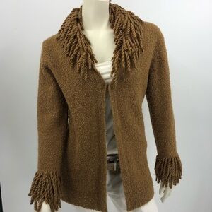 Lucidity Women’s M Cardigan Sweater Tan Fringe Wool Blend Long Sleeve RN# 75343