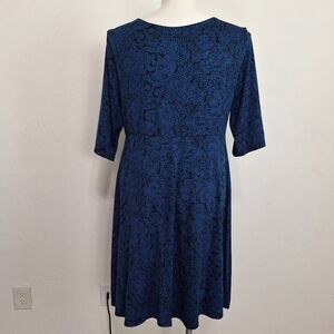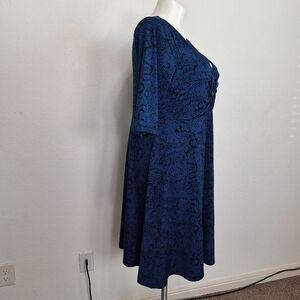 Lucie Lu Blue Black Sweetheart V-Neck Preppy Feminine Midi Dress Plus Size 2X