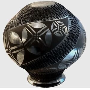 Lucio Soto Mata Ortiz 10" Black on Black Incised Pottery Vessel-Mexico-Stunning!