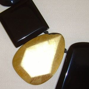 Lucite Bib Necklace in Black and Faux Gold Leaf