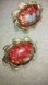 Orange-reddish oval shaped cabochon with gold glitter inside and shell.